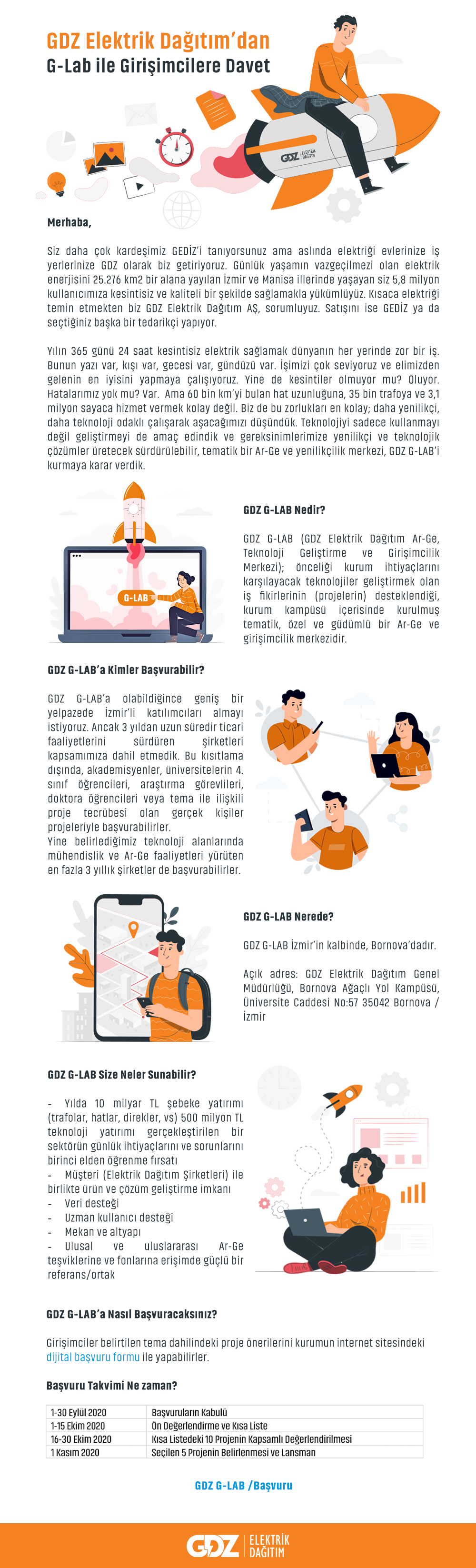 GDZ G-LAB (Ar-Ge, Teknoloji Geliştirme ve Girişimcilik Merkezi); günlük yaşamın vazgeçilmezi olan elektrik enerjisini 25.276 km2 alana yayılan İzmir ve Manisa illerinde yaşayan 5,8 milyon kullanıcısına kesintisiz ve kaliteli şekilde sağlamakla yükümlü GDZ Elektrik Dağıtım Şirketi’nin yeni kurduğu ve önceliği kurumun ihtiyaçlarını karşılayacak teknolojiler geliştirmek olan iş fikirlerinin / projelerin desteklendiği, tematik, özel ve güdümlü bir Ar-Ge ve Girişimcilik Merkezi’dir.